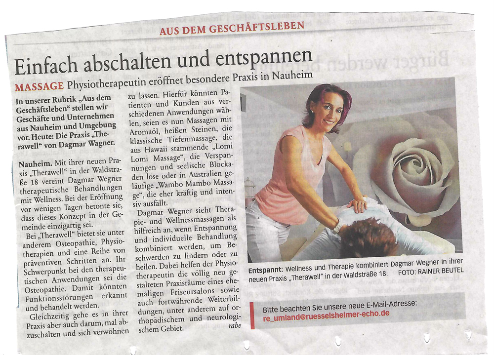 Hier ist unter der Psychotherapie auch die Entspannung ein wichtiges Thema: Wellnessmassagen.
